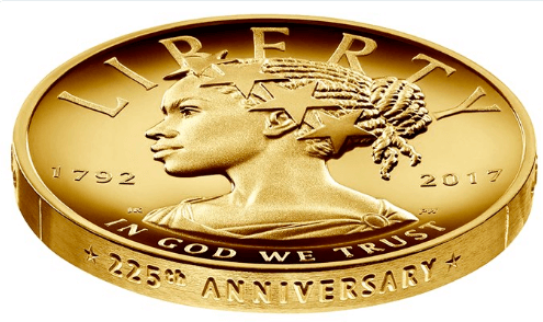 En effet, à l’occasion de son 225ème anniversaire, le US Mint a publié ce jeudi 12 janvier 2017, la photo d’une pièce représentant une Lady Liberty comme nous ne l’avons jamais vue : une femme noire portant des tresses ornée d’une couronne d’étoiles.
