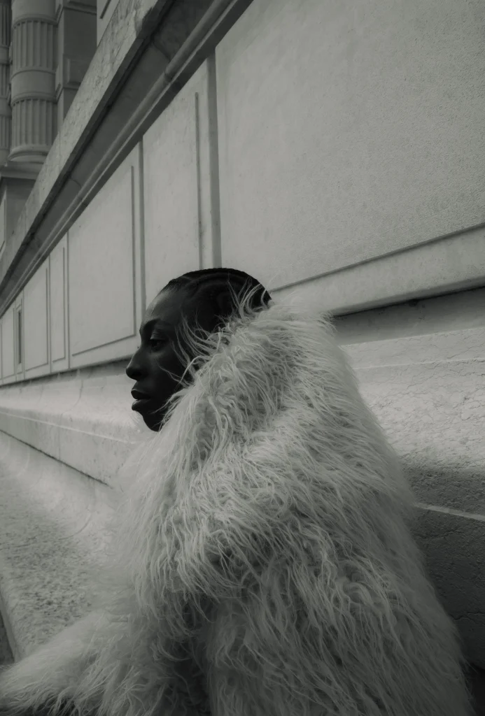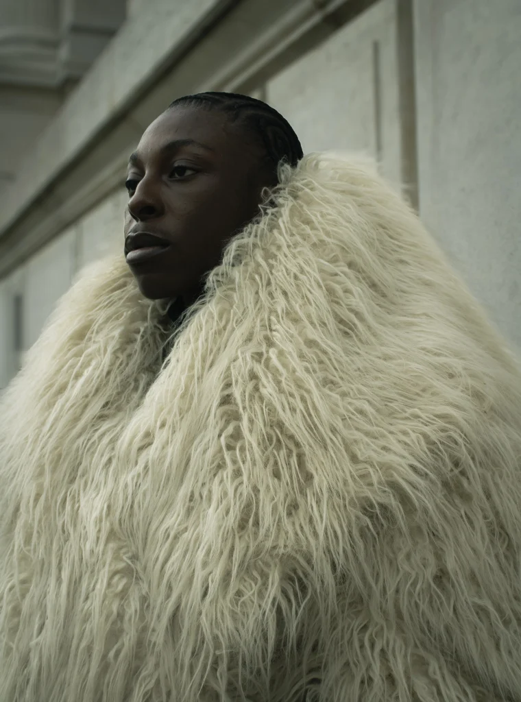 Le shooting prend fin. Samir valide le travail de la photographe. Il est déjà prêt à s’envoler pour l’avant-dernier événement de la journée : un défilé de mode de la marque Weinsanto. S’engage alors une course effrénée le long de l’avenue du Président Wilson, direction la bouche de métro Iéna. Le vent fouette la fourrure imposante qui l’enveloppe, donnant à Samir l’air d’un oiseau en en plein vol.